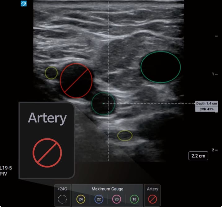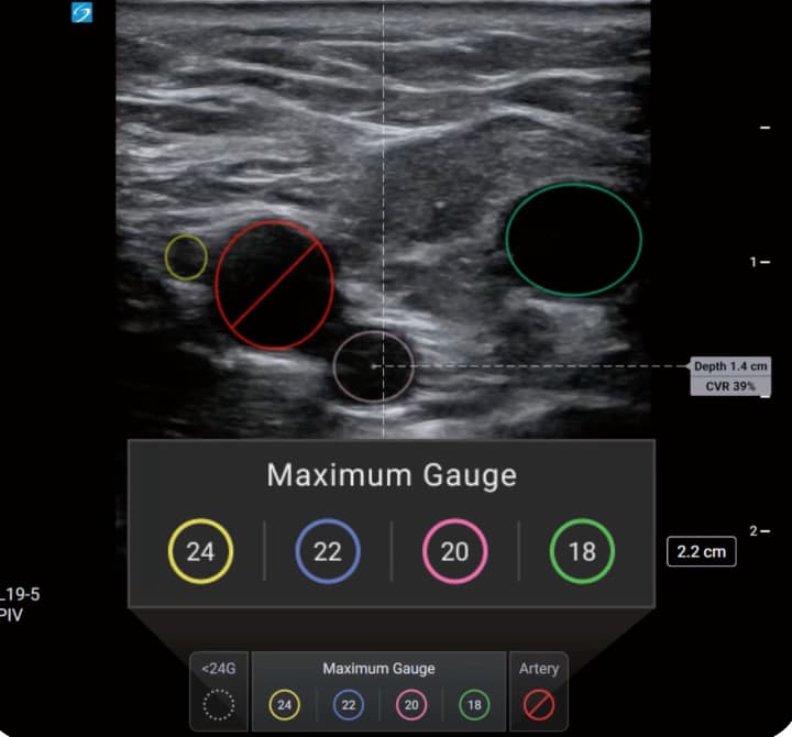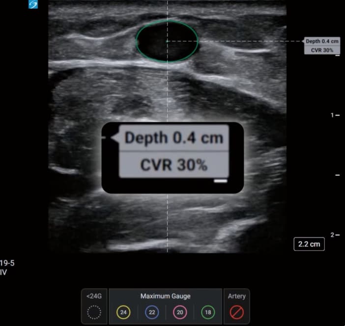 The introduction of AI-assisted vessel identification represents an extension of point-of-care ultrasound capabilities in vascular access procedures. By providing automated vessel analysis and CVR feedback, the technology aims to support clinical decision-making during the planning phase of peripheral IV insertion.